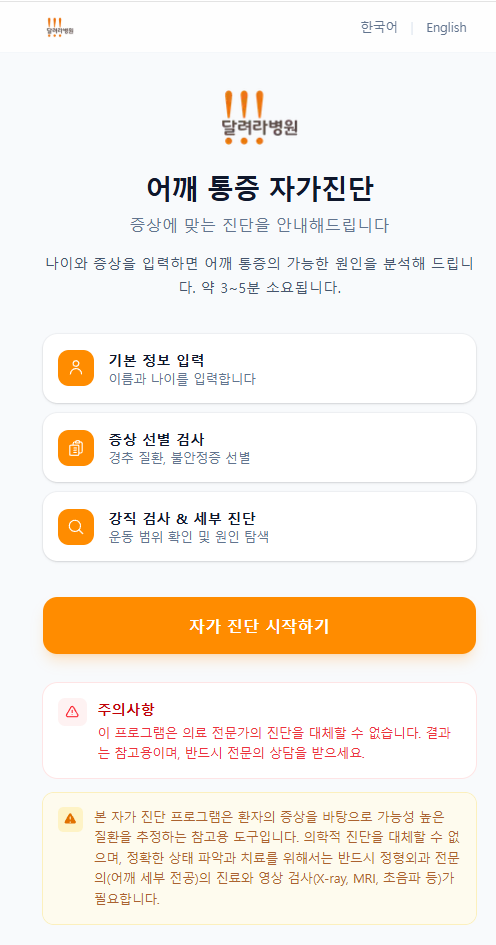 이에 달려라병원에서는 어깨 질환의 조기 발견을 돕기 위해 누구나 간편하게 참여할 수 있는